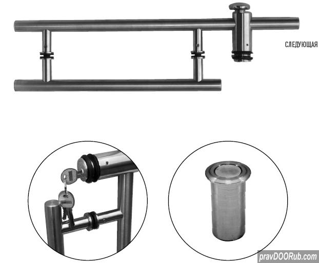 Встроенный замок в тело ручки позволяет без особых усилий производить запирание в пол -- поворотом ключа в верхней части штанги. Это очень удобно, например, в зимних условиях, если вход в помещение с улицы! (с)